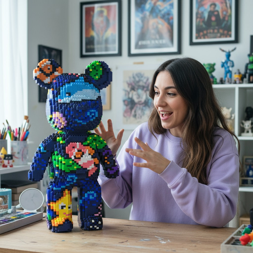 Découvrez notre collection originale : plus de 40 ours en brique à construire, chacun composé de 5 000 micro-briques de précision.